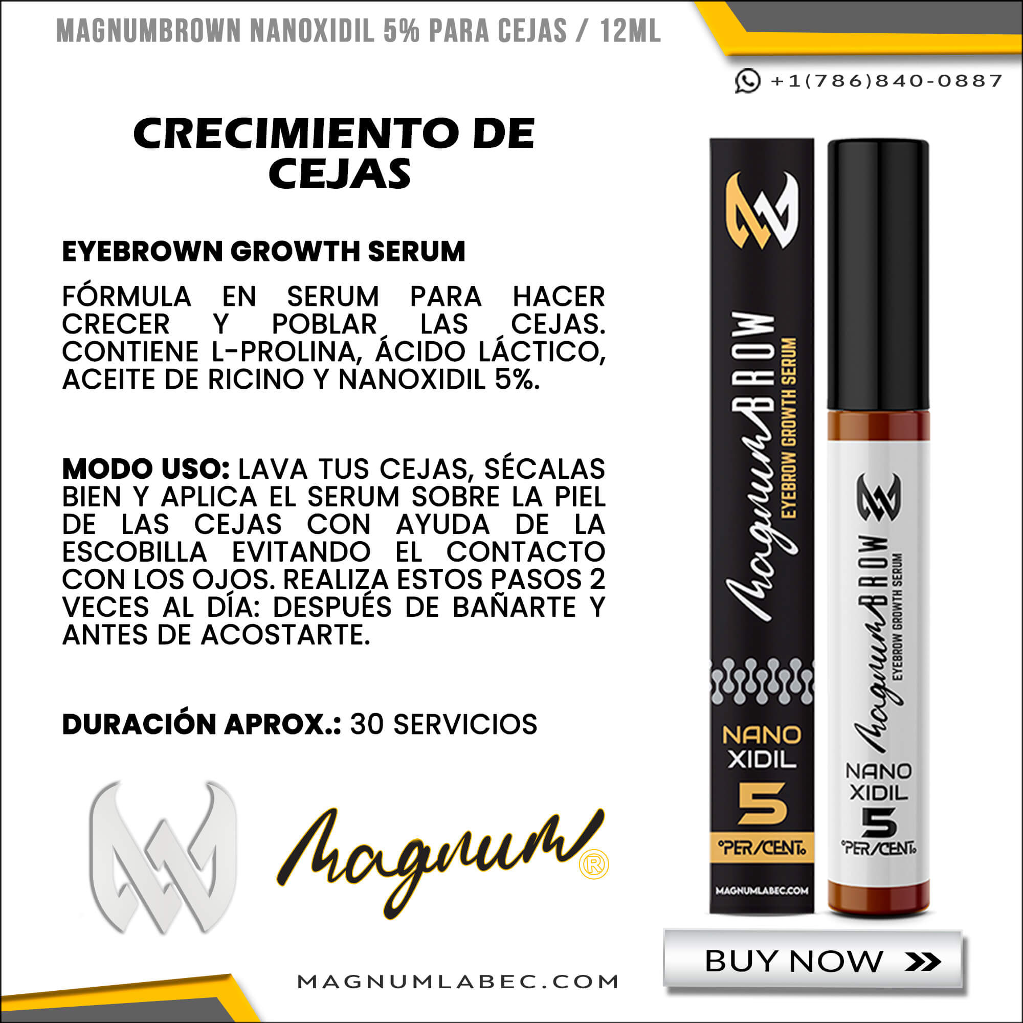 FΓRMULA EN SERUM PARA HACER CRECER Y POBLAR LAS CEJAS. CONTIENE L-PROLINA, ΓCIDO LΓCTICO, ACEITE DE RICINO Y NANOXIDIL 5%.